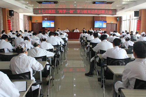5月4日下午,十七冶医院召开“两学一做”学习教育动员部署会。医院领导班子、各党支部书记及支委、全院副科级以上干部、各科室负责人、全体护士长约110人参加会议。