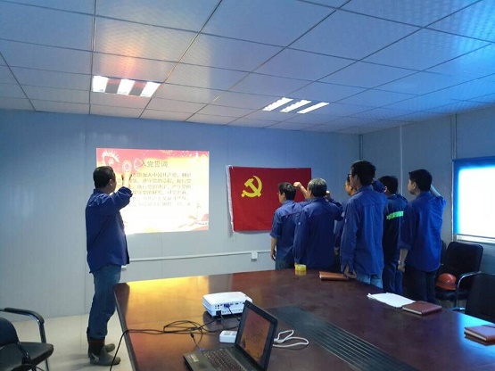 项目党支部书记以《永远的旗帜》为主题,从中国共产党的基本知识和理论、中国共产党的光辉历程、组织发展介绍三个部分讲了一堂精彩的党课。全体人员回顾了中国的成立、发展和壮大的艰辛历程,深刻领悟了取得今天的成就是中国共产党通过95年风雨同舟、95年艰苦奋斗、95年奋发图强而获得的,要更加珍惜今天的美好幸福生活。整个党日活动在“重温入党誓词”中结束。