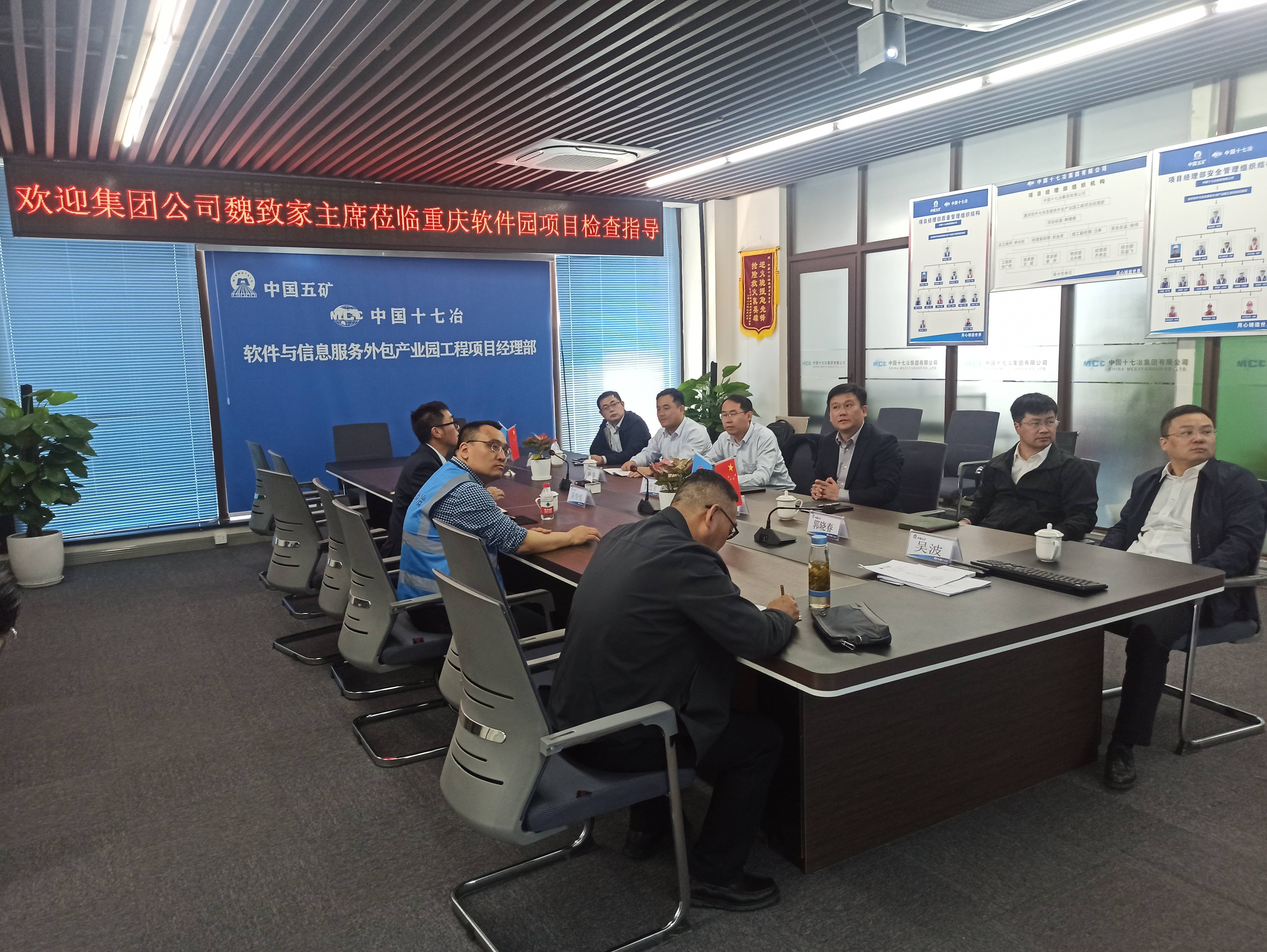 在重庆软件园项目,魏致家主席一行实地查看了项目建设情况,听取了项目负责人关于项目概况、施工进度、人力资源配置等情况的汇报,询问了西南分公司各项管理工作开展情况,对项目履约能力及精细化管理给予充分肯定,并就下一阶段重点工作提出具体要求:作为公司年度三十大重点项目之一,项目团队一是要提高政治站位,以高标准、严要求自我加压,强化项目履约,打造优质工程,
