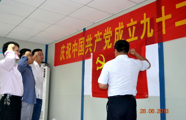 党的生日七•一到来之前,城建公司两级党组织和广大党员、积极分子举行丰富多彩的活动纪念党的92周年诞辰,党旗在公司快速发展的进程中和火热的施工大干一线迎风招展,震荡人心。